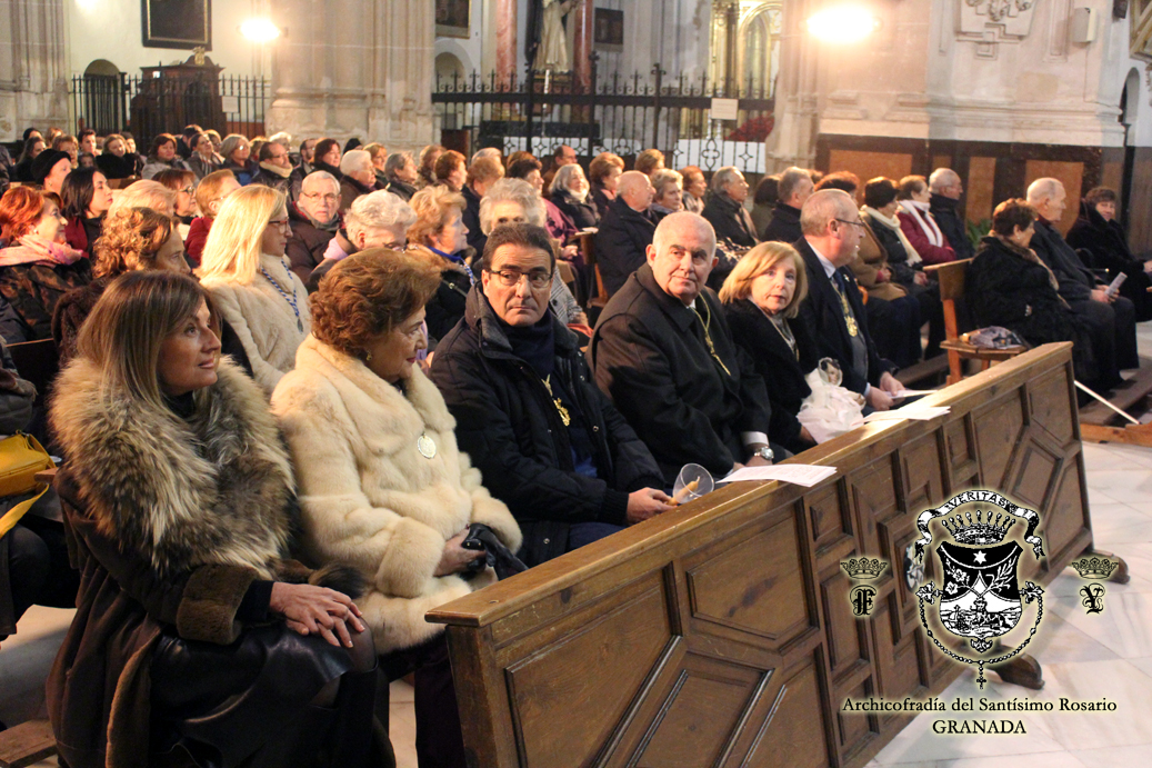 El diseño de la medalla recupera los modelos de principios del siglo XX, en formato redondo, con la imagen de Nuestra Señora del Rosario Coronada y la leyenda "Archicofradía de Ntra. Sra. del Rosario - Granada" en el anverso. En el reverso aparece una granada, flanqueada por las iniciales "F" e "Y" y la inscripción "1492", dentro de un rosario, reproduciendo también la parte posterior de las primeras medallas conservadas.